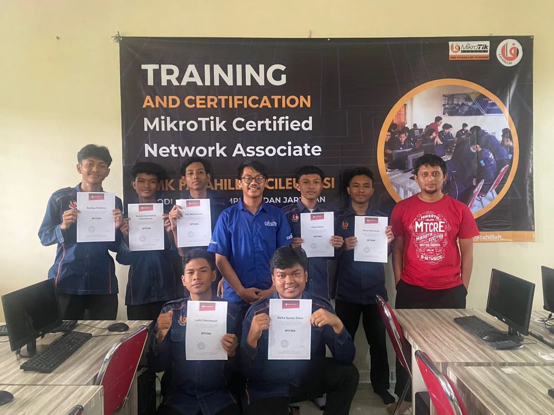 SMK Fatahillah Menyelenggarakan Training and Certification untuk MTCNA ( Mikrotik Certified Network Associate) yang dihelat pada tanggal 20 September 2025. kegiatan ini menjadi salah satu kegiatan rutin yang diselenggarakan SMK Fatahillah Cileungsi